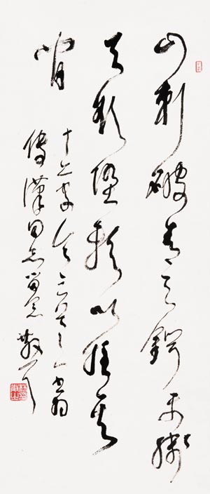 林散之治学有一往无前的钻劲。他十七岁即以范仲淹名言 “不及,非人也”为座右铭,并取号“三痴生”。他痴情于诗、书、画,终生未曾辍止